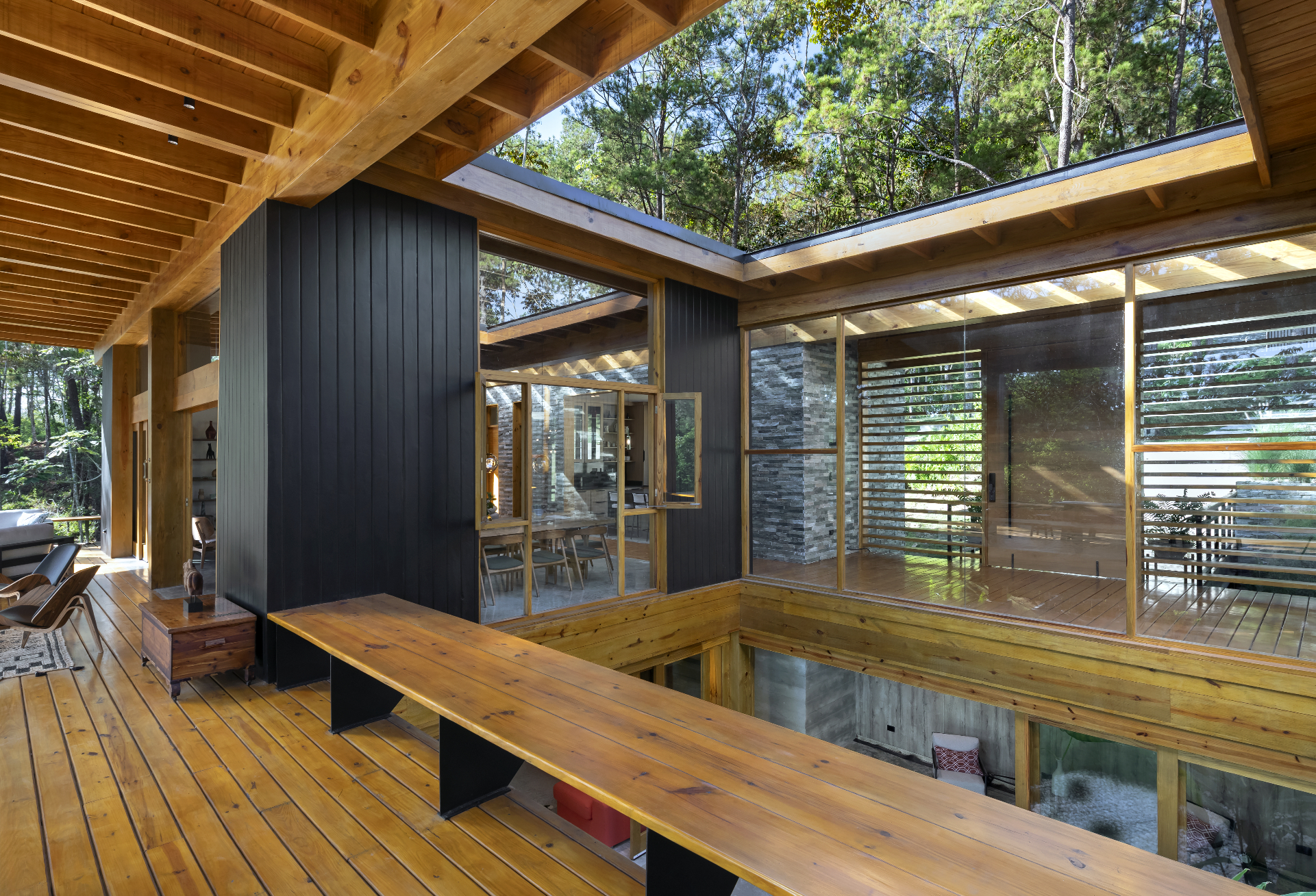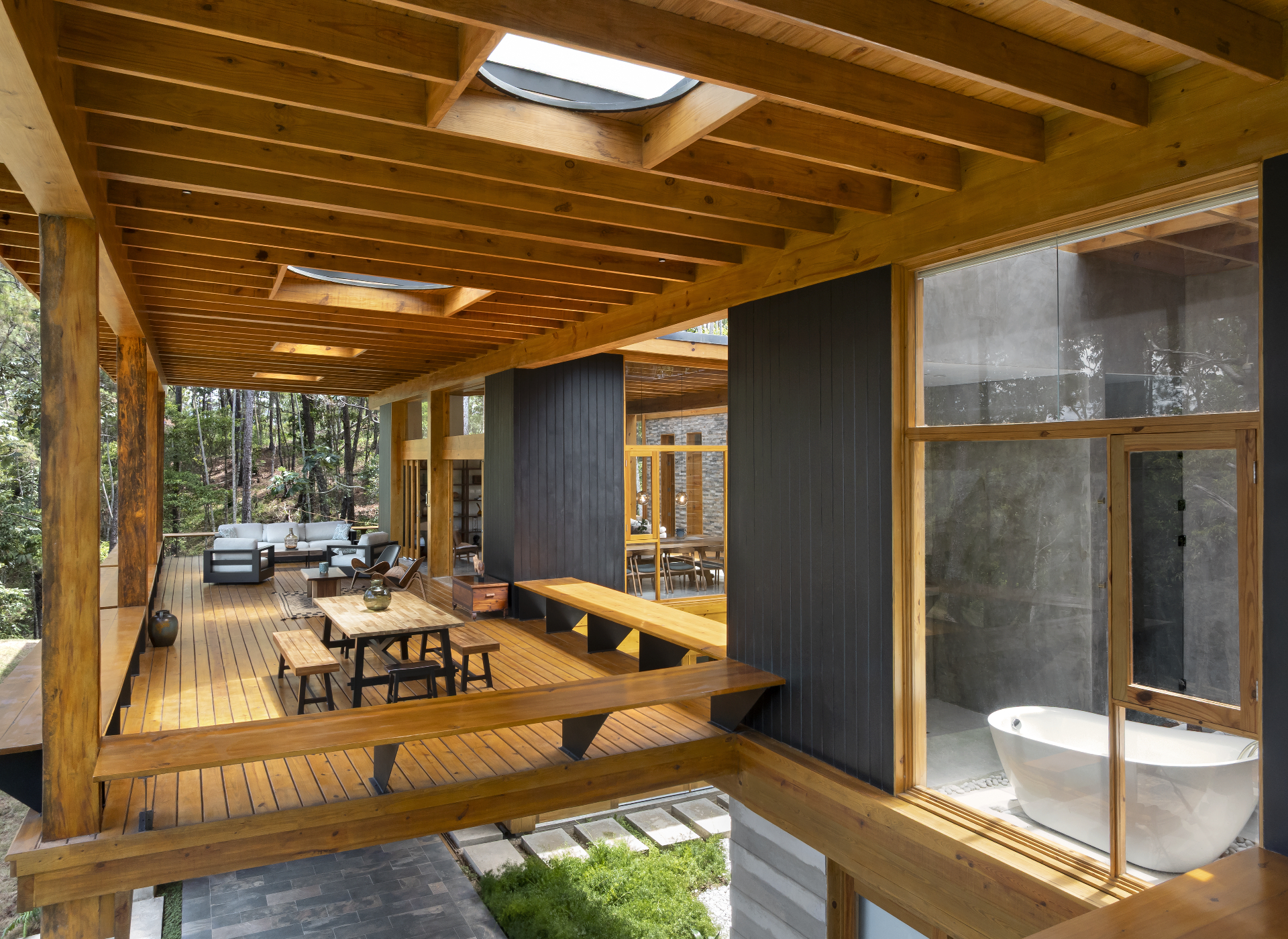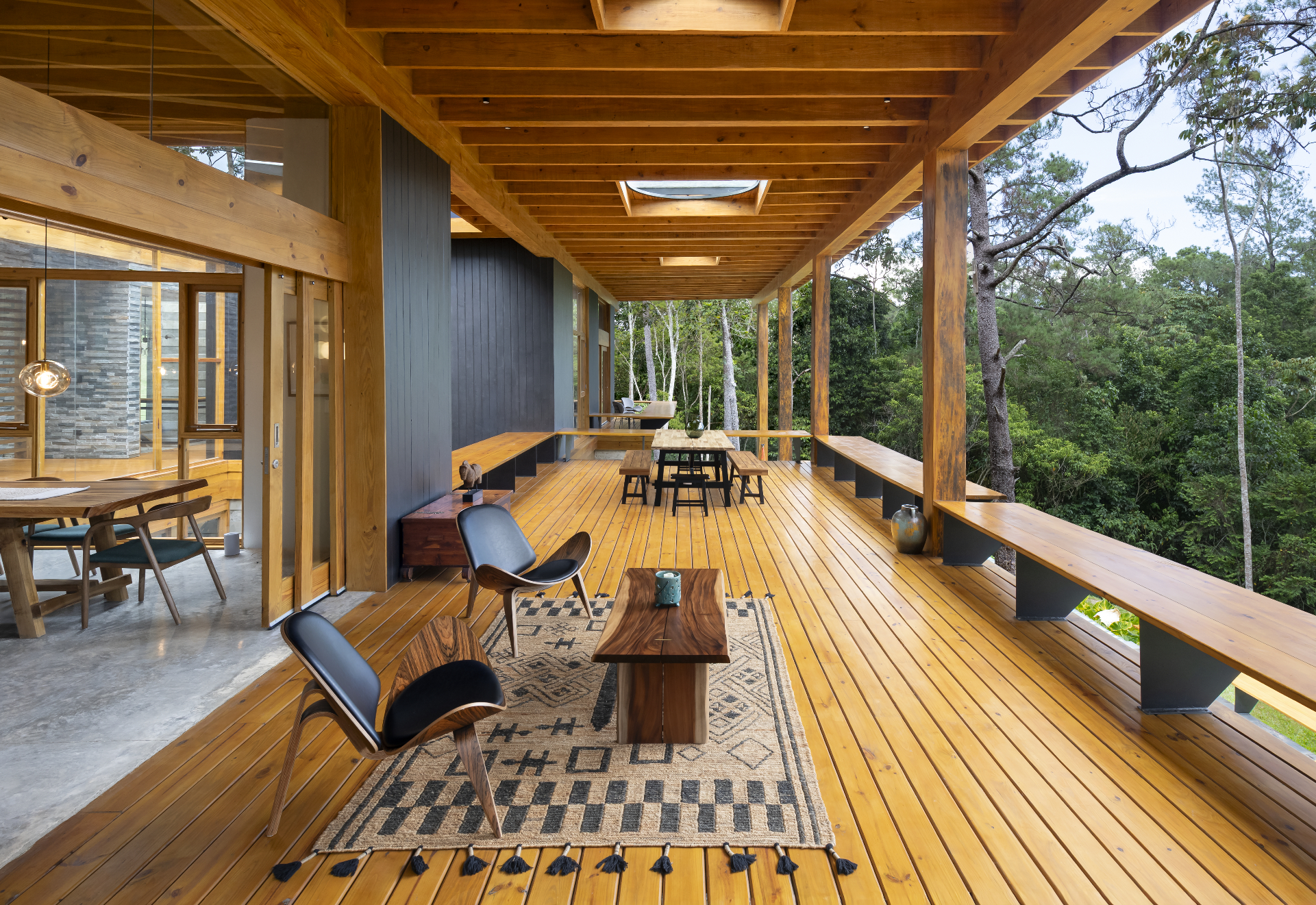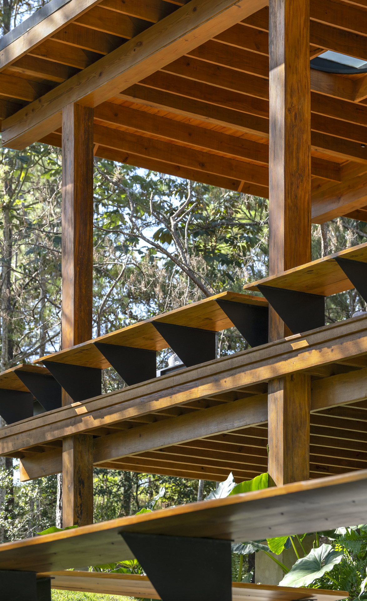 A pesar de su esquema general depurado, la escala del detalle revela un nivel de articulación interesante e isócrono. Los sistemas estructurales principales, madera y concreto, manifiestan honestamente su materialidad, dotando al proyecto de una identidad sincera y un carácter cálido.