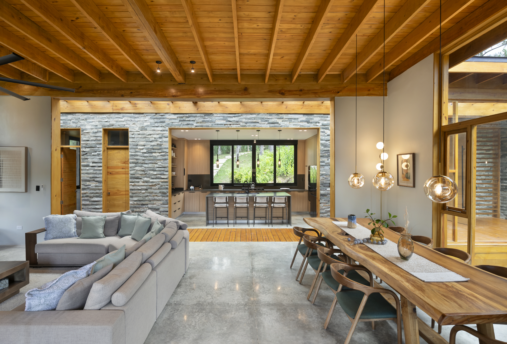 Ubicada en el exuberante y denso bosque tropical de la cordillera central, en Jumunuco, Jarabacoa, «The Bridge House» se erige como un santuario que invita a una profunda contemplación de la naturaleza. Su diseño se define por la simplicidad de dos líneas horizontales que atraviesan el paisaje, procurando una sensación de serenidad, y otorgándole a este último el protagonismo absoluto.